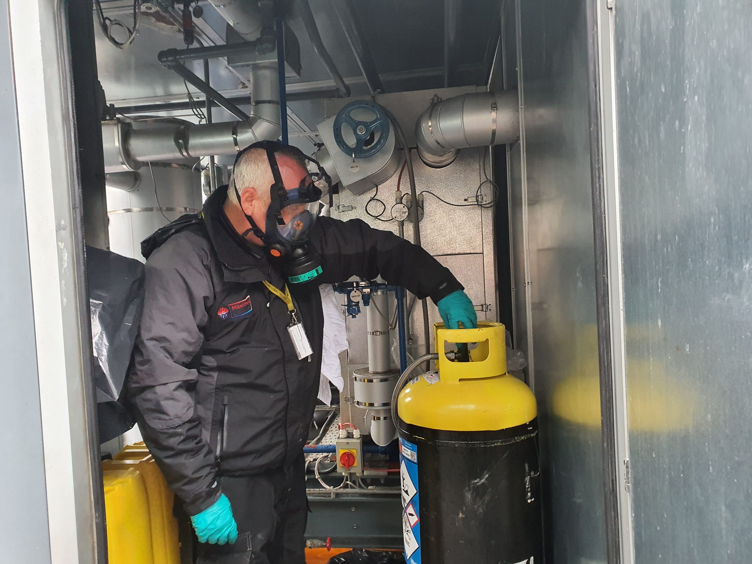 The chiller was pumped down and valved off. This saves on the time and recovery vessel to pump the refrigerant out.