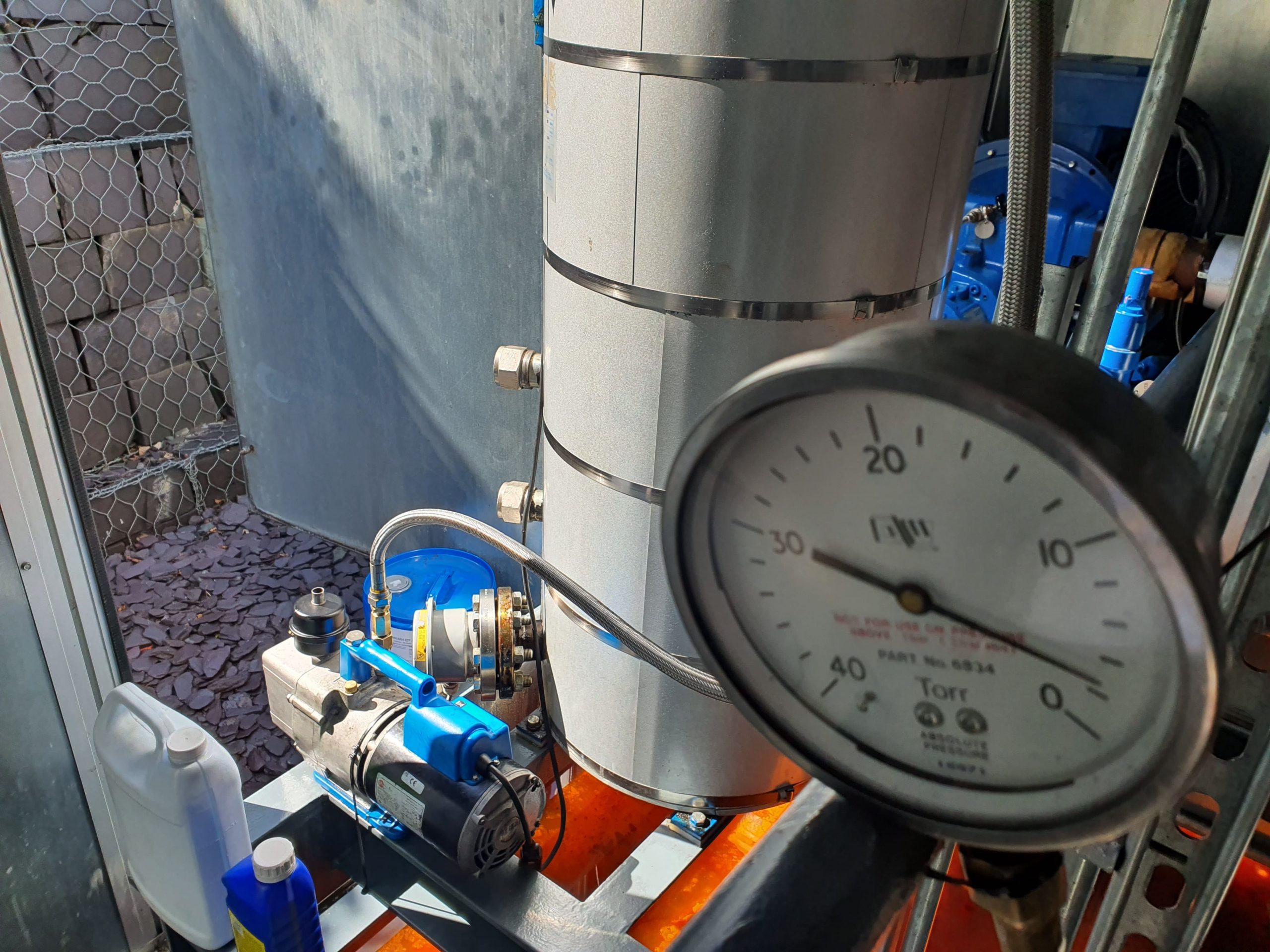 A cup of coffee and a good look round before staring anything. There were still a few nuts, bolts and washers left lying around by the onsite engineers, so a good opportunity for some house husbandry. This done, our engineer switched the main power supply on to the chiller…